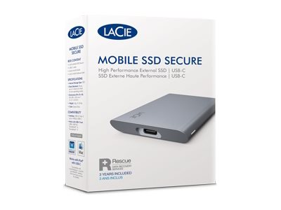 The LaCie Mobile Secure external hard drive combines high-speed data transfer, ample storage capacity, and robust security features into a portable and durable design. With an interface speed of 10.0 Gbps (USB 3.2 Gen 2) and max data transfer rates of up to 1050 MB/s, it offers rapid access to files, making it ideal for professionals who need efficiency and reliability. The drive's 1 TB capacity ensures you have plenty of space for your important documents, photos, and videos. Additionally, the 256-bit AES hardware encryption provides advanced security for your data, protecting it from unauthorized access. Its shock-resistant build further ensures the safety of your data, even in demanding environments.