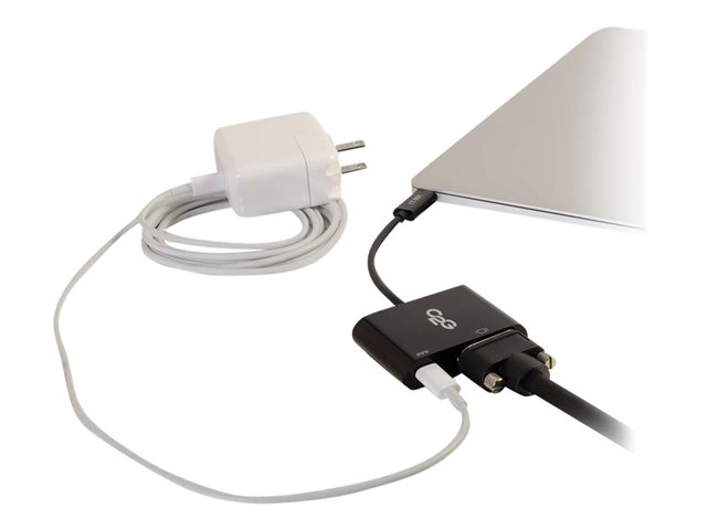 - Charge a laptop, tablet, or smartphone while displaying video through the VGA output