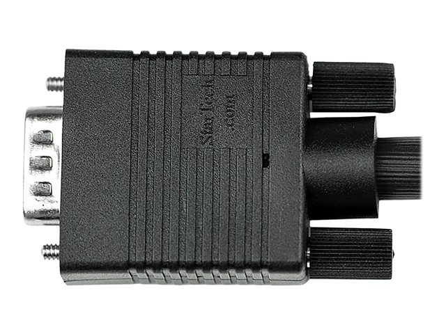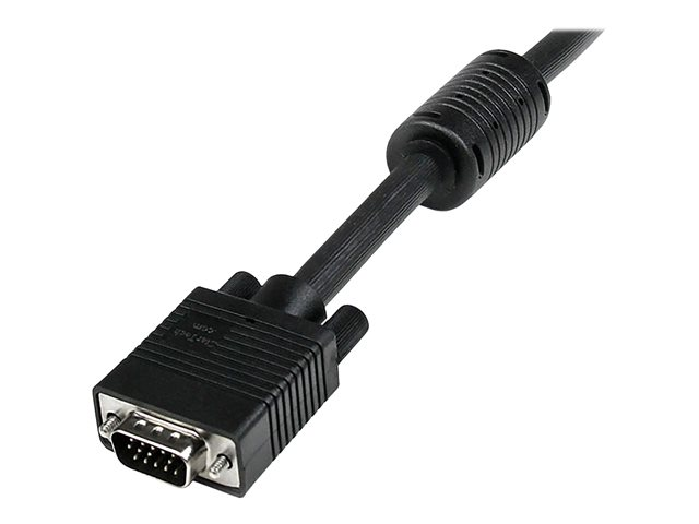 This durably constructed coaxial VGA video cable (HD15 to HD15) eliminates the picture "ghosting" and fuzzy images that are inherent to non-coaxial VGA cables, while delivering superior EMI interference protection by using ferrite cores near the connector ends.