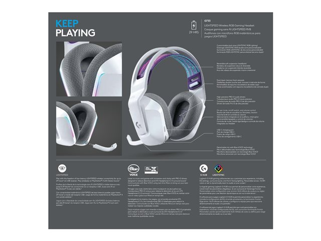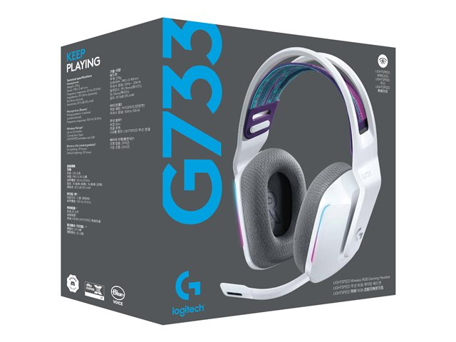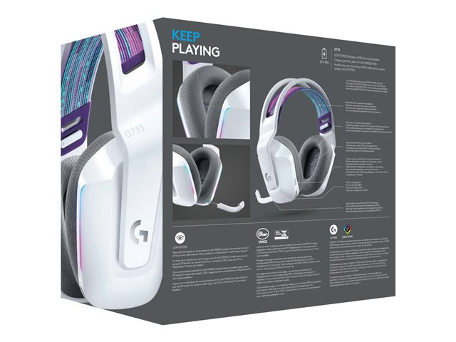 Endelig et hodesett som kan være like uttrykksfullt som deg. G733 er trådløst og utformet for komfort. Og det er utstyrt med all surroundlyd, talefiltrering og avansert belysning du trenger for mer stilig utseende, stemme og spill enn noensinne.