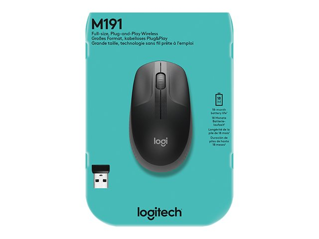 Logitech M190 er en mus i full størrelse. Den har en behagelig avrundet utforming som følger den naturlige kurven til middels store til store hender. Du jobber trådløst og beveger deg fritt - fra opptil 10 meter unna - så å si uten forsinkelser eller frafall. Du får god kvalitet med 18 måneders batteritid, presisjonssporing og rulling linje-for-linje til en rimelig pris.
