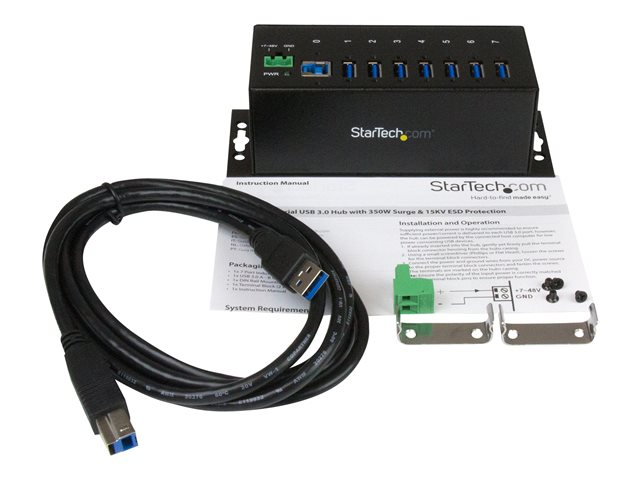 Metal Industrial USB-A Hub with ESD Protection & 350W Surge Protection - Din Rail, Wall or Desk Mountable - TAA Compliant USB Expander Hub (ST7300USBME) - Hub - 7 x SuperSpeed USB 3.0 - DIN-skinnemonterbar, veggmonterbar - DC-strøm - for P/N: ITB20D3250, USB312SAT3CB, USB315CB2M, USBLT1MWS, USBLT2MBR, USBLTM1MBK, USBLTM1MWH
