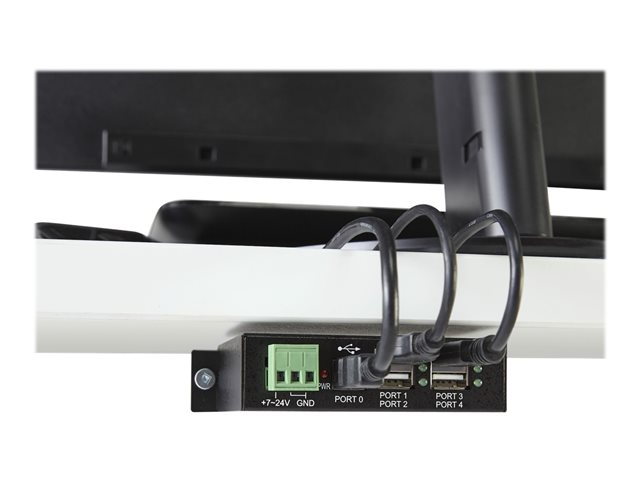 4 Port Rugged Industrial USB 2.0 Hub - Hub - 4 x USB 2.0 - DIN-skinnemonterbar - DC-strøm - for P/N: ITB20D3250, MSDREADU2OTG, USB2HAB15, USB2HAB30AC, USB2HAB50AC, USB2HABM1, USB2HABM6RA