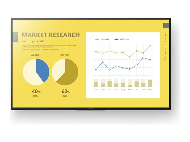 Denne skjermen er designet for holdbarhet og ytelse og kan brukes opptil 16 timer om dagen, noe som gjør den til et pålitelig valg for kommersielle miljøer. Med smarte funksjoner som innebygd Chromecast og skjermspeiling er den også perfekt for interaktive presentasjoner og strømming. Opplev den perfekte blandingen av ytelse, tilkoblingsmuligheter og kvalitet med Sony Bravia FW-55EZ20L.