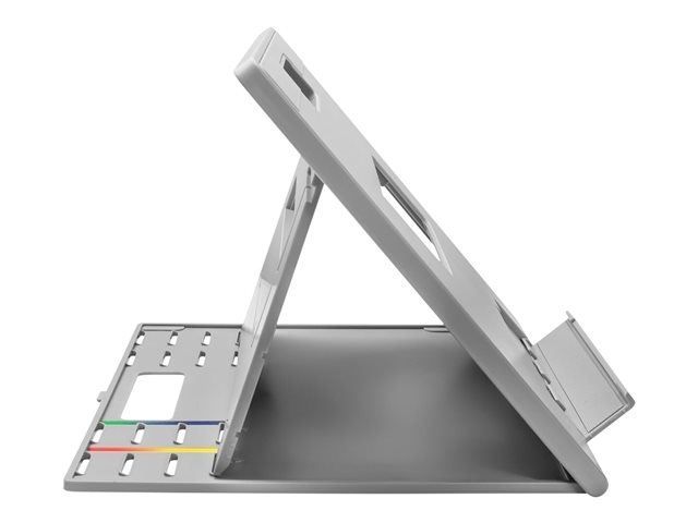 The Kensington Easy Riser Go Laptop Cooling Stand is an essential accessory for notebook and tablet PC users seeking comfort and stability. Its adjustable height and angle features, supported by the SmartFit system, allow for an ergonomic setup tailored to individual needs, reducing the risk of strain during prolonged use. The stand's anti-slip feet ensure your device remains securely in place, while its compatibility with notebooks up to 17 inches makes it a versatile choice for a wide audience. Additionally, the design promotes airflow, helping to keep your laptop cool and perform efficiently. Whether for work, study, or entertainment, the Easy Riser Go enhances your computing experience by combining comfort, stability, and cooling efficiency.