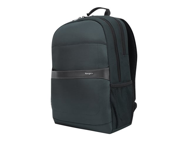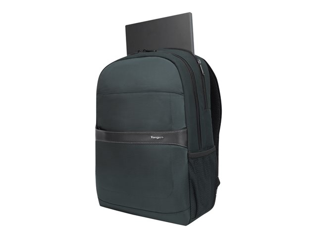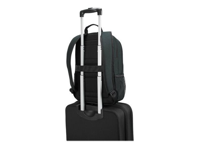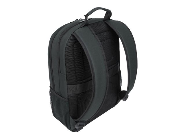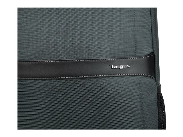 Get professional style and abundant organization with the 12"- 15.6" GeoLite Advanced Backpack. With a clean, lightweight look, it's ideal for professionals who want laptop protection and added organization in a modern silhouette. The Targus quality foam compartment protects your laptop from everyday bumps. The padded back panel includes air mesh for added comfort. Multiple zippered pockets inside and out keep you efficiently organized. Dual side pockets keep your hydration and umbrella close at hand. Travel with ease atop rolling luggage with the integrated trolley strap. Durable, dobby polyester in modern slate gray delivers minimalist good looks. Water-repellent fabric helps keep it looking good for the long haul.